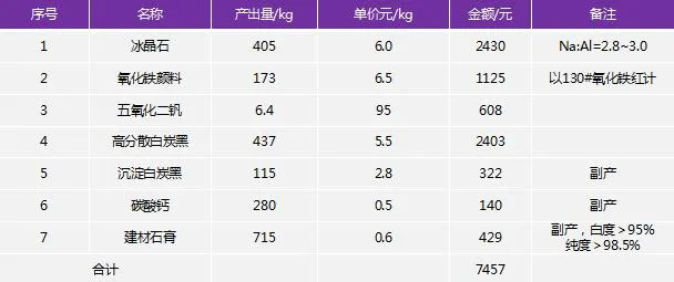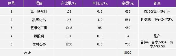 导语: 目前我国由含钒石煤矿炼钒的工艺需首先对含钒石煤矿进行焙烧,所述焙烧方式包括钠化焙烧、钙化焙烧和无盐焙烧(即空白焙烧)。元素利用通常只分离提取其中的V2O5,而对其中的其它金属、非金属元素则予以放弃。普遍存在的问题是:焙烧过程产生的窑气、浸出过程产生的酸性废渣、冶炼过程产生的工艺废水会对环境造成明显污染;单纯分离提取钒元素处理成本高,存在经济效益瓶颈,与钒钛磁铁矿冶炼过程提钒所得产品相比缺乏成本优势,产业发展受到制约。本技术实现流程简化,消除污染,降低成本,实现含矾石煤资源综合利用。平台期待与全国有需求的合作伙伴开展深度合作,共同推动行业绿色革命。 含钒石煤矿主要化学组成有Fe2O3、Al2O3、SiO2、V2O5、K2O、CaO、V2O5等,矿区不同化学组成会有所差别。分离含钒石煤矿中的钒元素生产五氧化二钒;分离其中的铁生产氧化铁(颜料氧化铁或磁性氧化铁);提取其中的铝生产氟化铝或冰晶石或阻燃用氢氧化铝或聚合氯化铝。根据建设方的需要,分离其中的硅生产高分散性白炭黑或超细白炭黑。 采用具有独立知识产权的酸浸工艺,在不对含钒石煤矿物进行焙烧的前提下对制得的矿物粉末进行酸浸,将其中的钒、铁、铝溶出,生成可溶性盐类并进入液相,硅留存于固相。经分离收得含有钒、铁、铝可溶性盐的酸浸出液和主要成分为二氧化硅的酸浸渣。 将酸浸出液送入后续工序,依次分离出钒、铁、铝,控制工艺条件制得相应的前驱物。处理前驱物得五氧化二钒、氧化铁(颜料氧化铁或磁性氧化铁)、铝化合物(氟化铝或冰晶石或阻燃用氢氧化铝或聚合氯化铝)。处理过程对所产生的尾气、废水进行综合利用,不对环境造成污染。将酸浸渣送碱溶工序,经处理制得水玻璃,然后再采用非酸沉析工艺处理水玻璃,控制工艺条件收得高分散白炭黑或超细白炭黑。白炭黑生产过程所产生的废水用于回收氢氧化钠,无排放。所得氢氧化钠返回碱溶工序用作碱溶剂。处理过程无三废排放,不对环境造成污染。 1、元素浸出率 V2O5:90~92% Al2O3:88~95% Fe2O3>95% SiO2>76%。 2、元素收得率(以浸出率为基数) V2O5>95% Al2O3>97% Fe2O3>96% SiO2>98% 1、以甘肃肃北某公司含钒石煤矿为例,主要化学组成为:SiO253.99%,Al2O3 11.36%,TFe 5.38%,MgO 4.45%,V2O5 0.73%。每处理1t石煤矿生产总成本3632元,销售收入7457元,利润3825元。产品产量及销售收入见下表: 2、以甘肃敦煌某公司含钒石煤矿为例。其主要化学组成为:Fe2O3 4.77%,Al2O3 10.91%,V2O5 1.13%,SiO2 59.27%。对石煤矿中的硅不予利用。每处理1t石煤矿生产总成本1471元,销售收入3020元,利润1549元。产品产量及销售收入见下表: 八投资 按年处理20万吨含钒石煤矿计,约需设备投资2亿(实际投资额度以实际设计结果为准)。